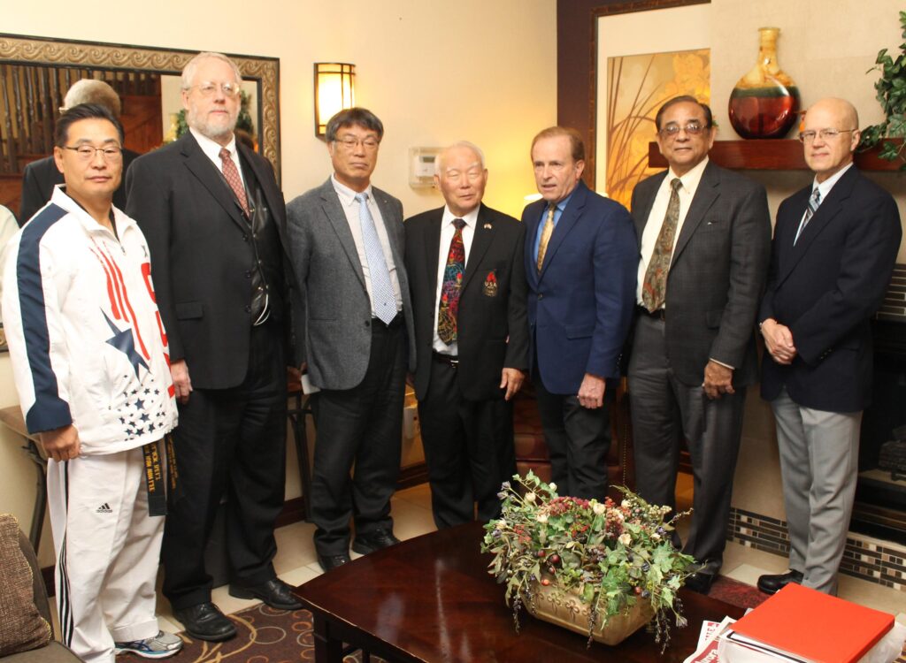 Đại sư Han Won Lee (bên trái) đã tiếp đón các bậc thầy Taekwondo đến từ Hàn Quốc, Pakistan và Hoa Kỳ, bao gồm Đại sư Hwa Chong đẳng 10 (ở giữa): Từ trái sang phải: Đại sư Han Won Lee; Đại sư Joseph Lloyd; Đại sư Chi Seung-Won; Đại sư Hwa Chong đẳng 10; Tổng giám đốc điều hành Liên đoàn Kang Duk Won thế giới James Wigginton; Đại sư Saleem Jehangir; Cố vấn pháp lý của WKF Master James Young